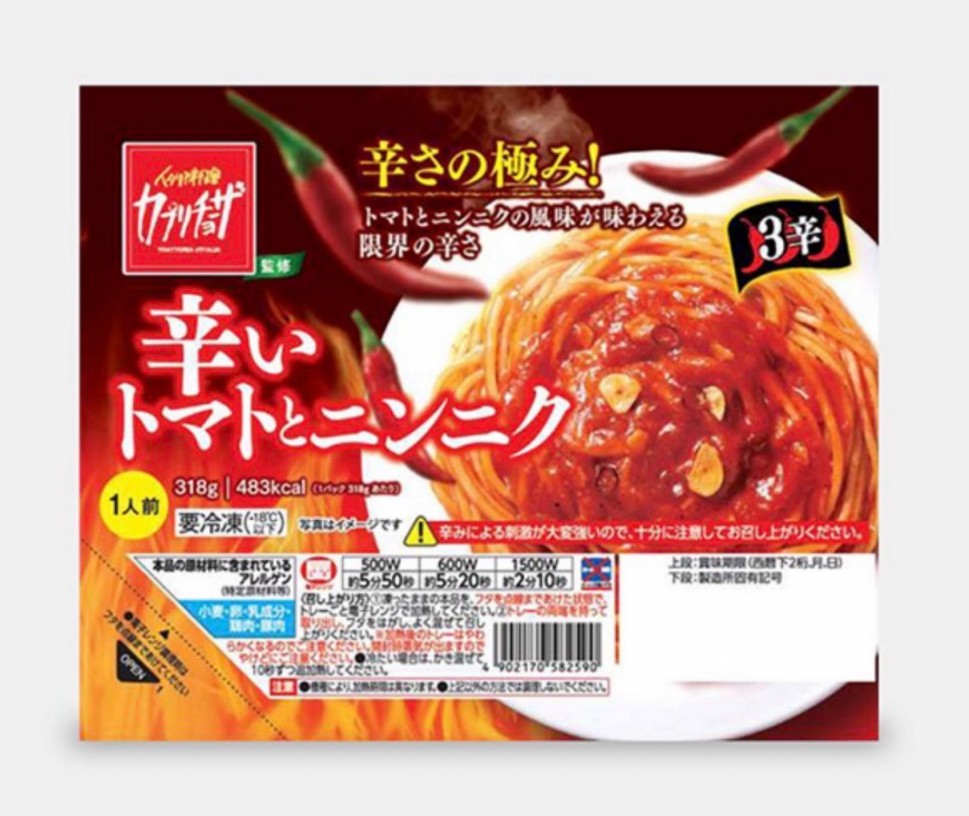 お手軽でコスパ良し。にんにくとトマトの風味がええ感じでした。冷凍庫にストック決定。欲を言えば、辛さと量はもっと欲しかったかも。マリーシャープスのハバネロソースかけて、ピリ辛に近づいた?