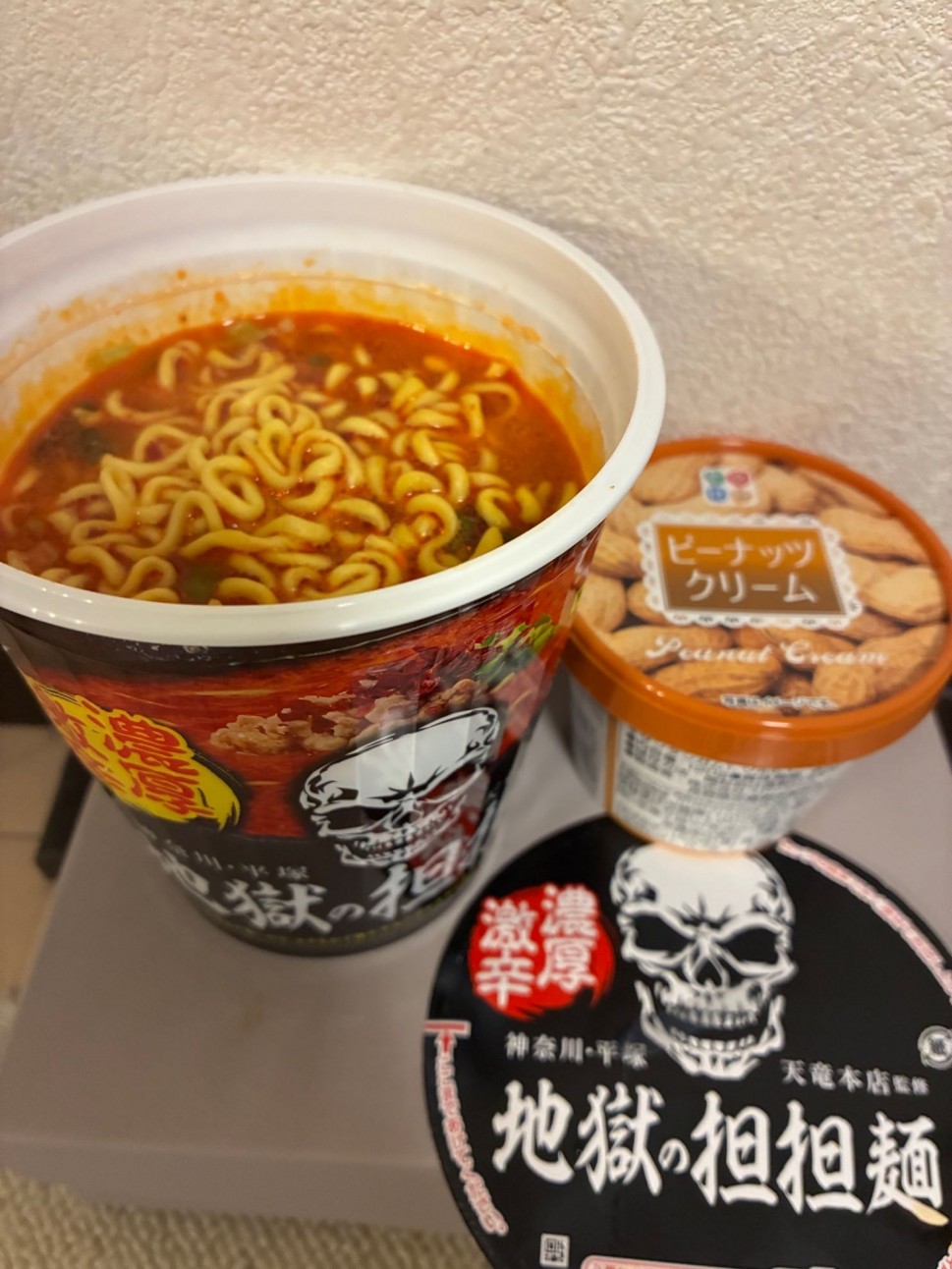 おつカラさまです。過去に実食済みのこちら。まずはとにかく混ぜること。横にじゃなくて天地返しを繰り返す。それでもコク不足なので、TikTokでみたピーナッツバターを小さじで1、2杯入れると、結構コクが出て美味しくなる。肝心の辛さは、ちょっと辛いかな程度、完全に舌がポンコツになってます。以前は真っ直ぐに辛いって感じられたのに。ピーナッツバターを入れるとさらにマイルドに。ごちそうさまでした。