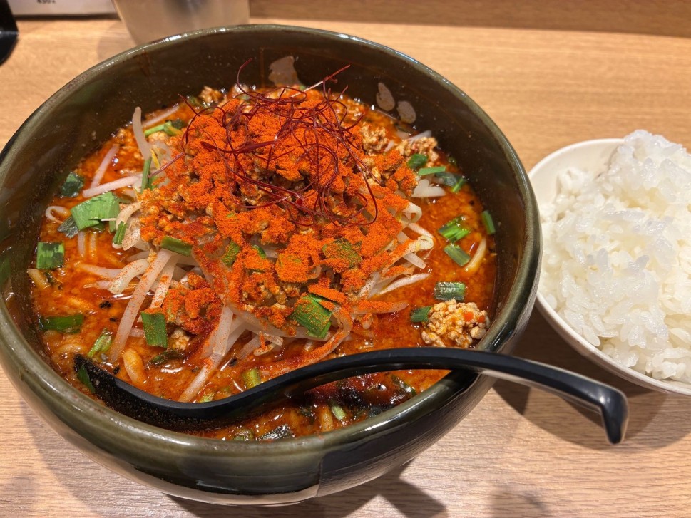 おつカラさまです。ライス付けました。激辛道場破りの旅。ど・みそは本店以来15年以上は経過、まさか自分が激辛メニューを制しに行くとは。あの時のオレ、今のオレおかしくなっちゃってるよ笑。なかなかの行列イメージがあって、多店舗展開で?並びなく入れるのはありがたすぎる。見た目はエグそうな辛さに見えるが、スープのボディがしっかりしているので辛さ一辺倒にはならず、旨みも強いです。辛さはジワジワきてしっかり頭皮から発汗できます。麺もうまいし、シャキシャキのモヤシも良い仕事してます。ライスとの相性も抜群です。途中で卓上の唐辛子と山椒でカラシビブースト、終盤にお酢でさっぱりとフィニッシュ。スープだけでもいけます。非常に満足度の高い一杯です、ごちそうさまでした。