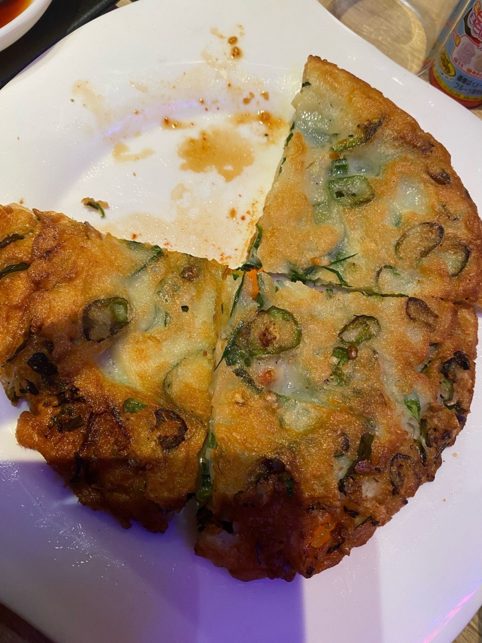 青唐辛子、長ネギなどが入った韓国チヂミ