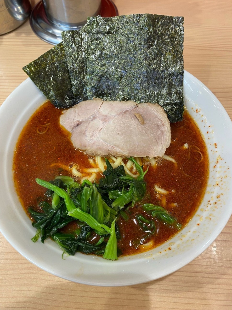 家系ラーメン特有の脂の旨みと唐辛子の辛味を感じました