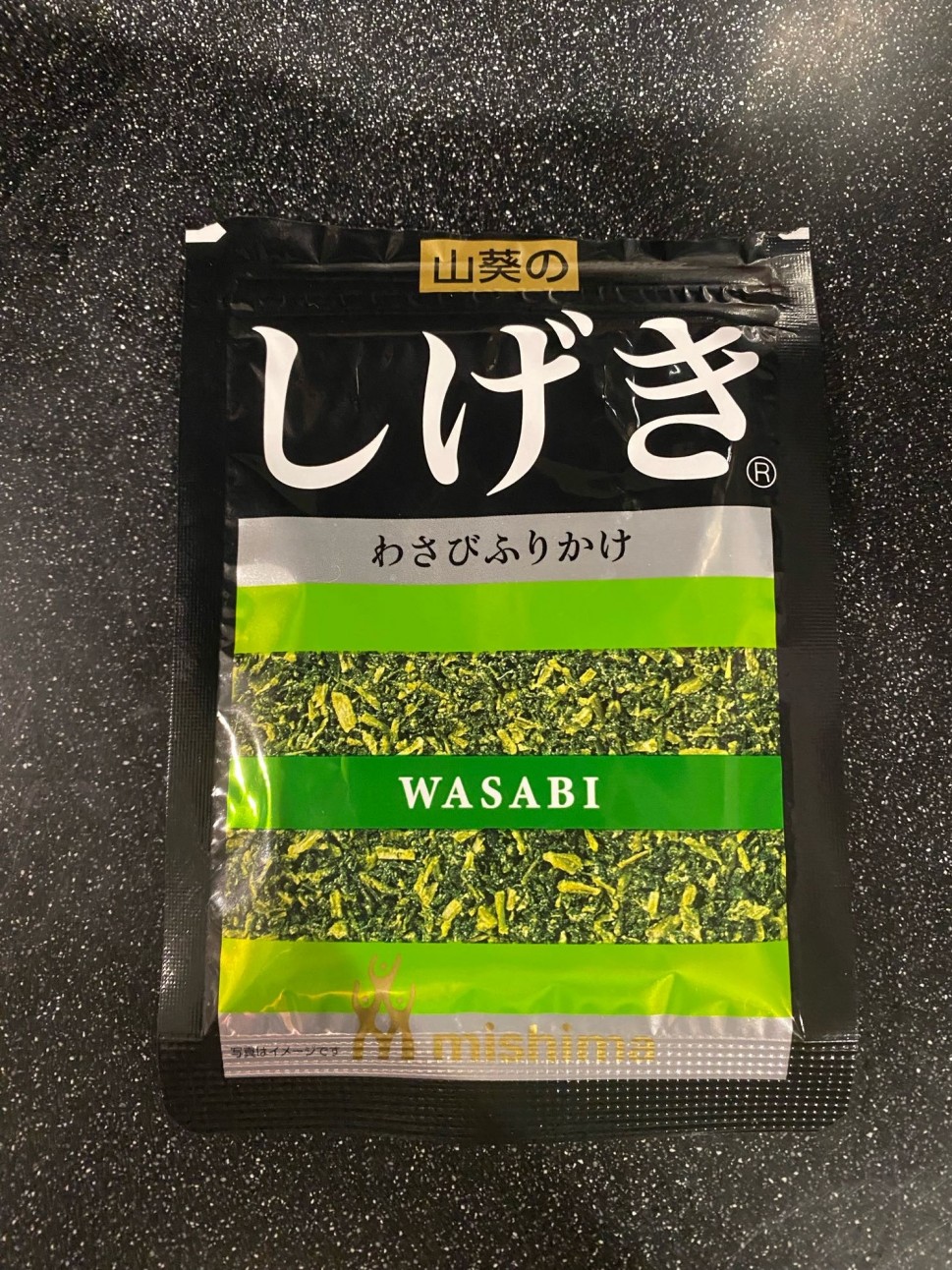 しっかりとわさびの香りがありツーンとくるふりかけで、蒸したじゃがいもに合いました!!