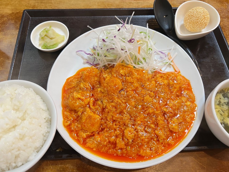 一般的な中華料理店のエビチリよりは辛いのだが、