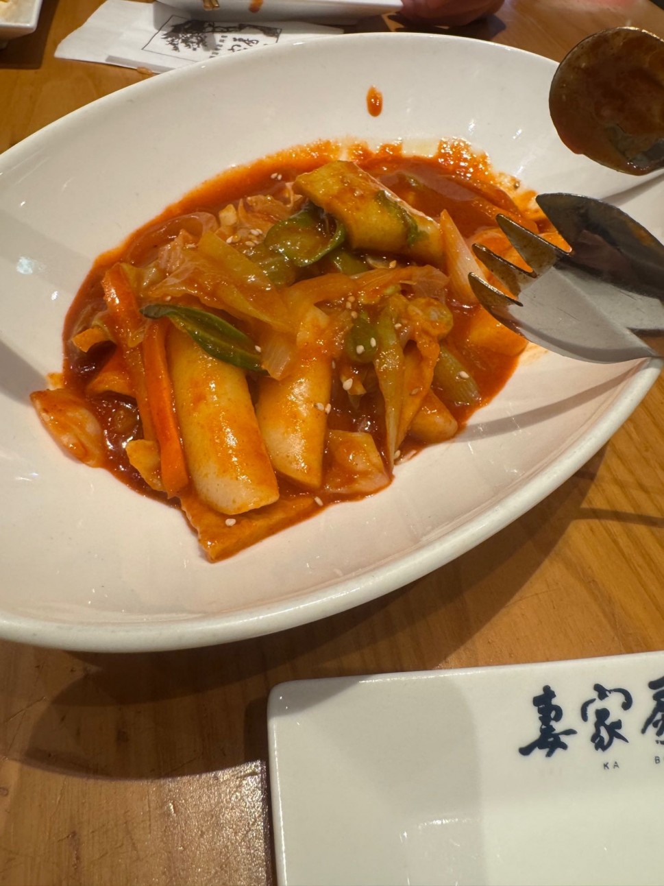 トッポッキ、野菜、韓国おでんのオムクもはいって食べ応えあり!甘辛で美味しいくテーブルにコチュジャンあるので、辛さを追加しても良い!