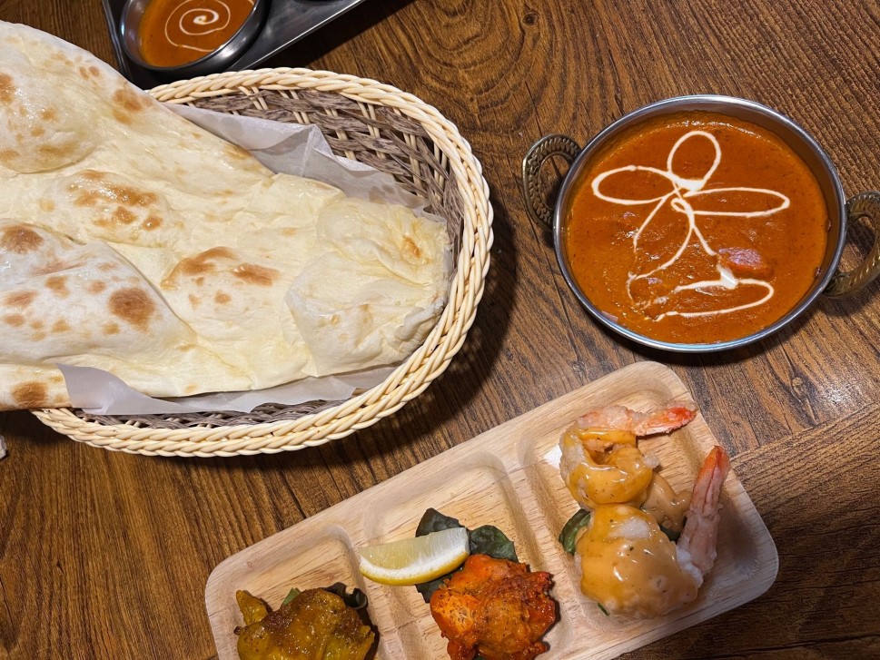 ランチメニューのお気に入り、エビマヨチキンティッカセット・プレーンナン、今までノーマル(🌶 2)だったところ今回は1番上のSUPER HOT(🌶 5)のだいすきなバターチキンカレーで🥳