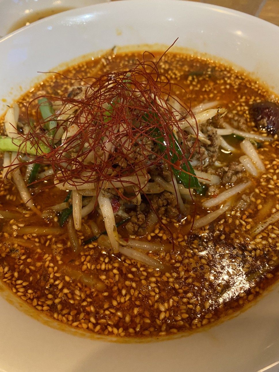火鍋を食べた人しか頼めない坦々麺です。火鍋自体は鶏白湯のスープと火鍋スープと2種類で割りながら食べるので、辛くはないです。