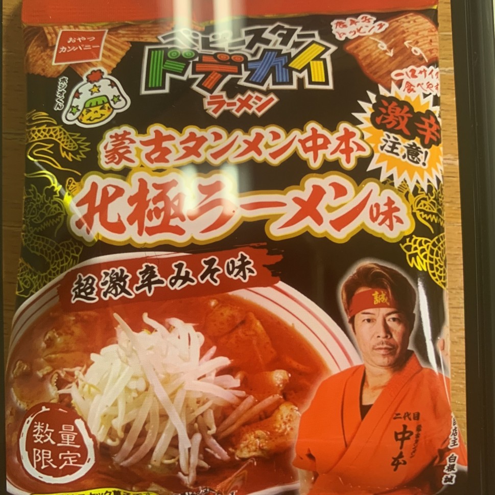 セブンで発見し、即購入!スナックにしたら、辛さはどうだと興味深かった。あっ!しっかり辛いなぁー!さすが北極ラーメン味、カップ麺ほどの辛さではないが、スナックにしては果敢にやってる!
