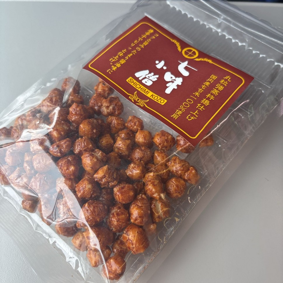 一粒だと辛くないですが、食べ続けるとヒーヒーと辛さを感じます。辛いのが好きな方は物足りないかもしれませんが、私にはちょうどよいピリ辛です。