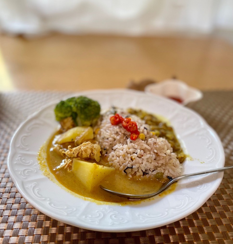 いつもはレッド、たまに食べたくなるイエロー。イエローにはちょっとカレー粉か入っててインド風なんだよね。これ、亡きメーヤウ信濃町先代のお言葉、聞いたのは30年前‥w 自作豆カレーと2種盛り。