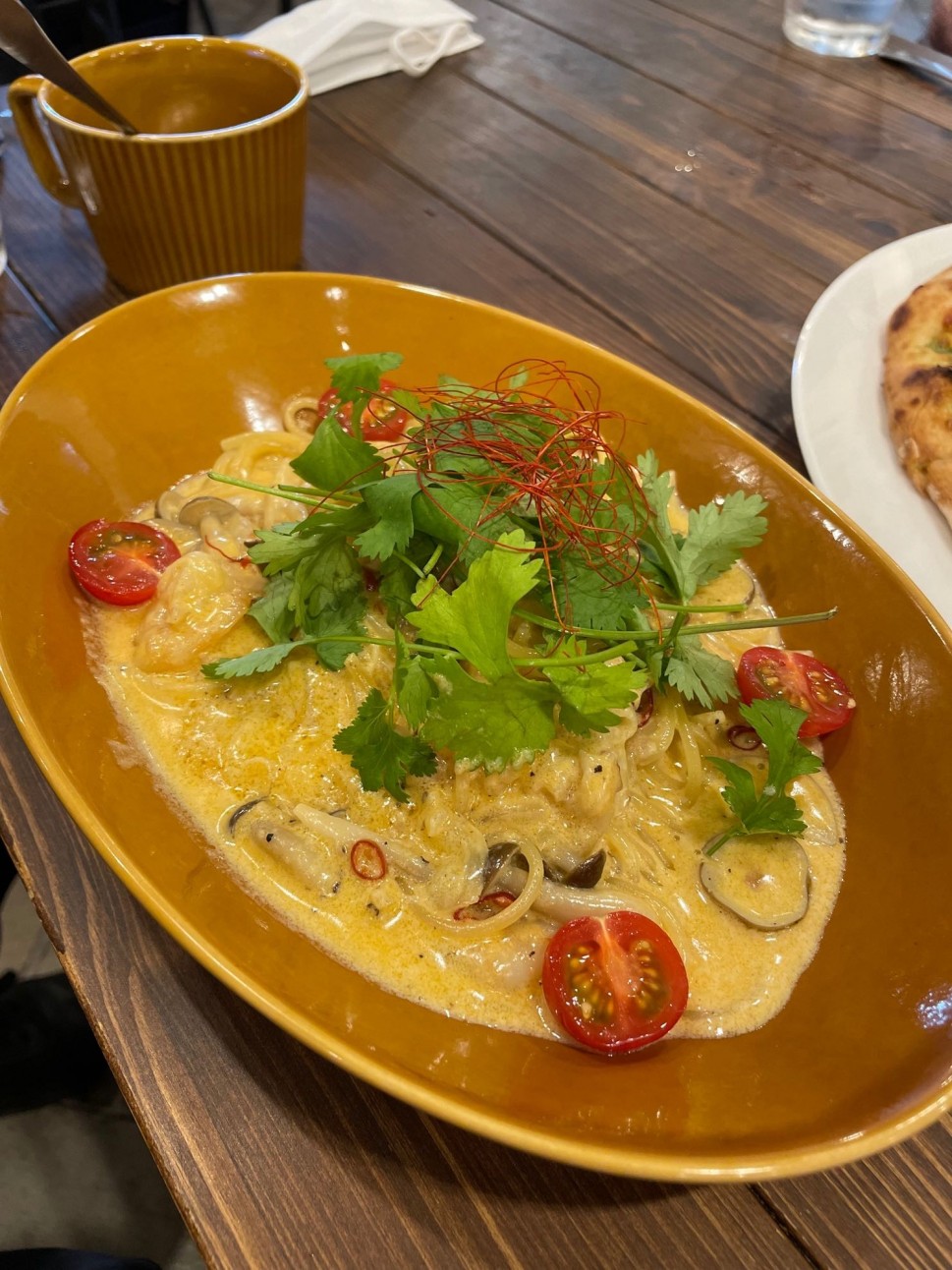 お気に入りのイタリアン。いつも、面白いパスタやドリアを考えるんですよねー。刺激的なトムヤムクンスープがクリームでマイルドになっております。