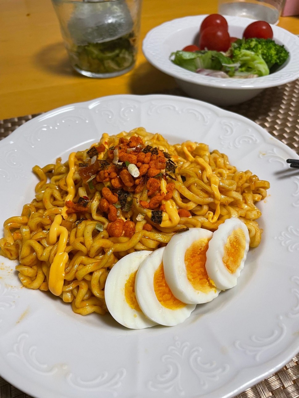 ちなみに、油そばの元祖ぶぶか実店舗には、この激辛揚げ玉は入っておらず。この激辛揚げ玉は2年ほど前の千里眼監修の辛辛辛というカップラーメンに入ってました。同実店舗の千里眼のラーメンにも激辛揚げ玉が入ってます。