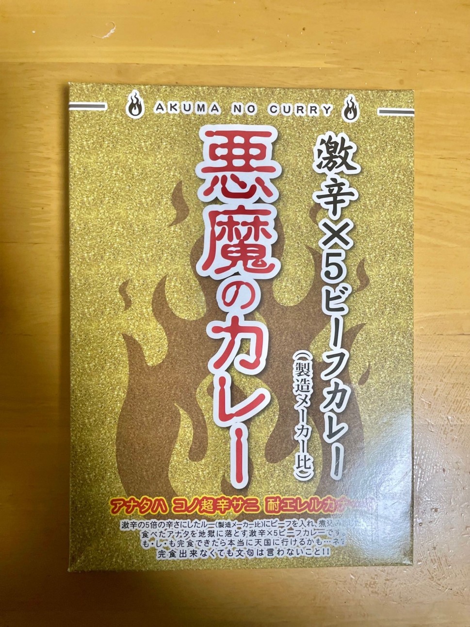地獄のカレーと同シリーズ、地獄のカレーの5倍辛いとか、あれ?おかしいな、こちらの方がずっとおいしく感じます。味はこのまま3倍辛さをおとしてくれるといいな。