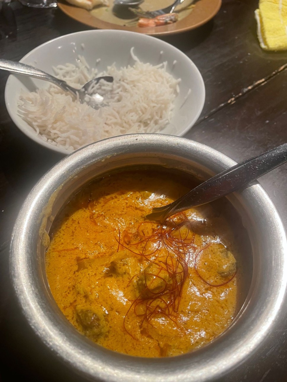 ケシの実をすりつぶすガスガスマサラの濃厚なソースは、アンドラ王朝の料理とのこと。
