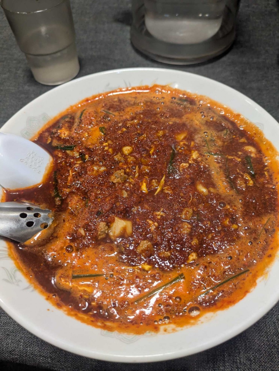 辛味より唐辛子の粉っぽさが残るのが残念。もう少しスープに辛味と旨味がほしい。